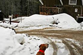 It slips in clumps off the barn roof,