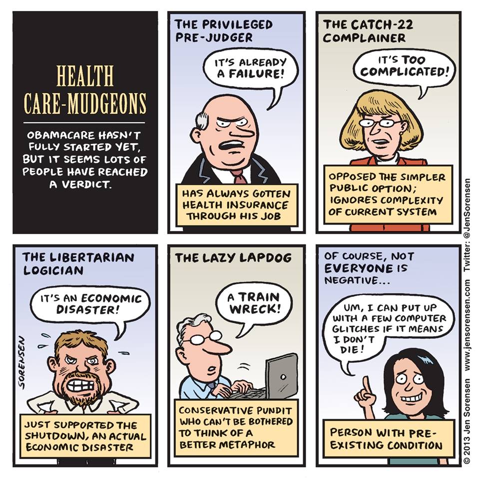 A lot of people are confused about what the Affordable Care Act does and don’t seem to realize that their insurance will actually come from a combination of Medicaid (or Medicare (for those who qualify) and a private insurer or just from a private insurer.  This is  the kind of insurance many got (I understand there are fewer offered these days) when they retired and got Medicare Advantage from a private insurer through their former employer as I do.  My retiree’s Medicare Advantage is partly subsidized by the City of Boston but I pay a monthly premium just as I pay a monthly premium for Medicare.  The ACA changes none of this for me.  And it changes nothing about employees who get qualified plans through their employers.  But to hear some of the Republicans carry on you would think that some staffer from the Department of Health and Human Services – or maybe Kathleen Sebelius herself will be performing medical exams.